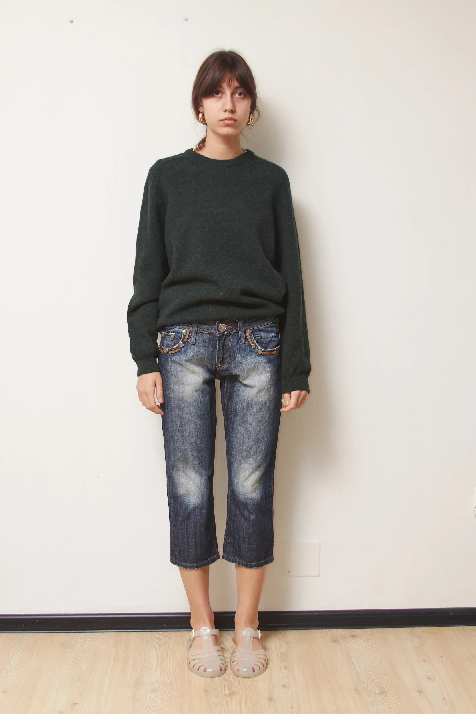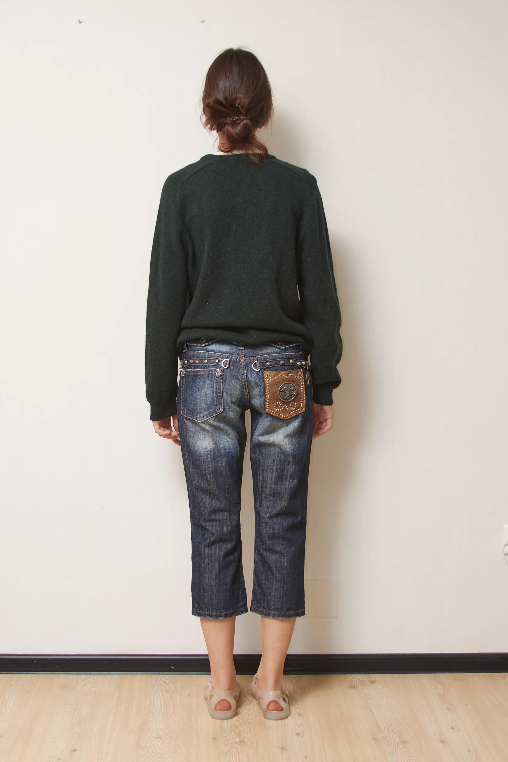 Mărime pe eticheta: 29. Corespund la un S. Talie 74cm, lungime 78cm (cropped).