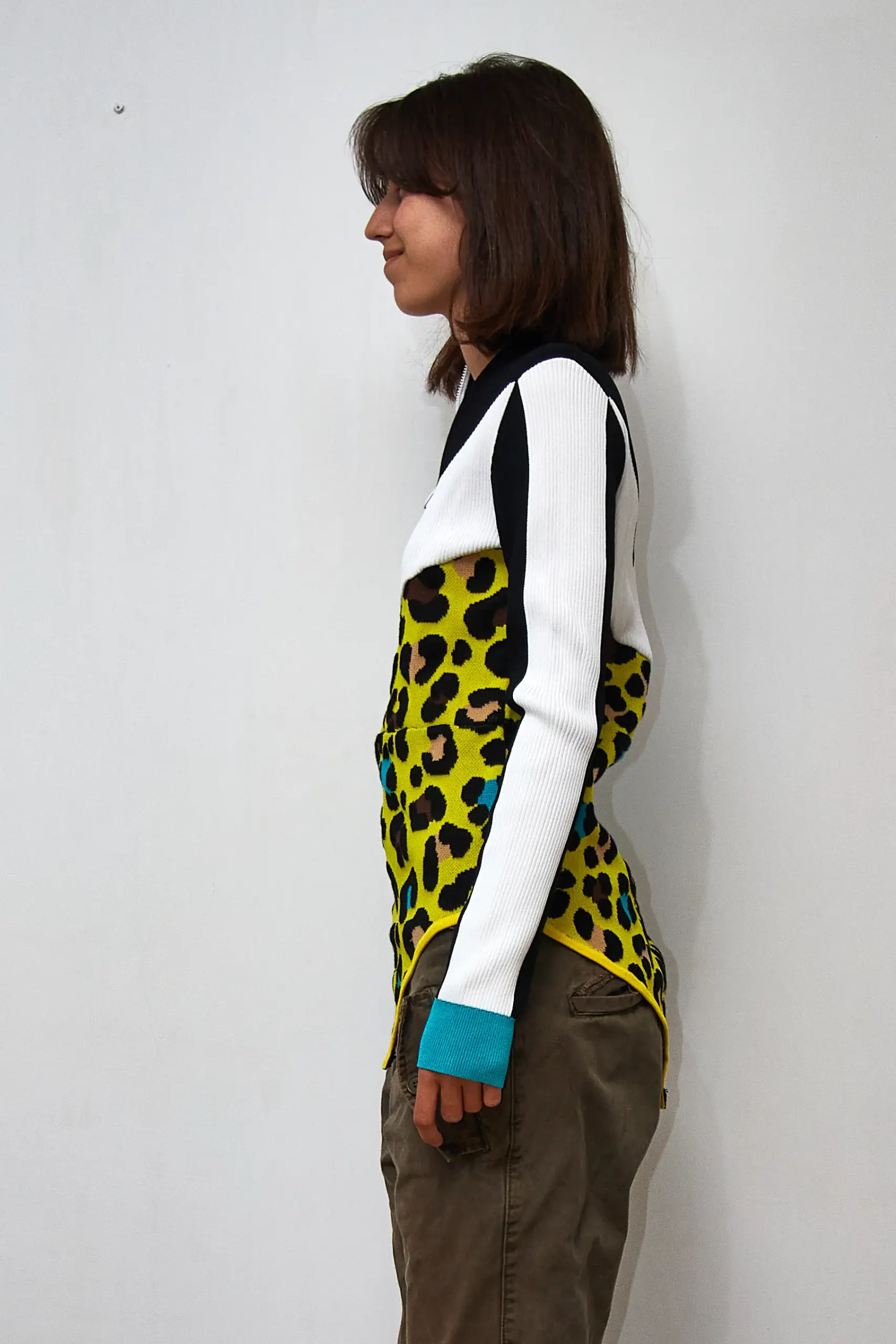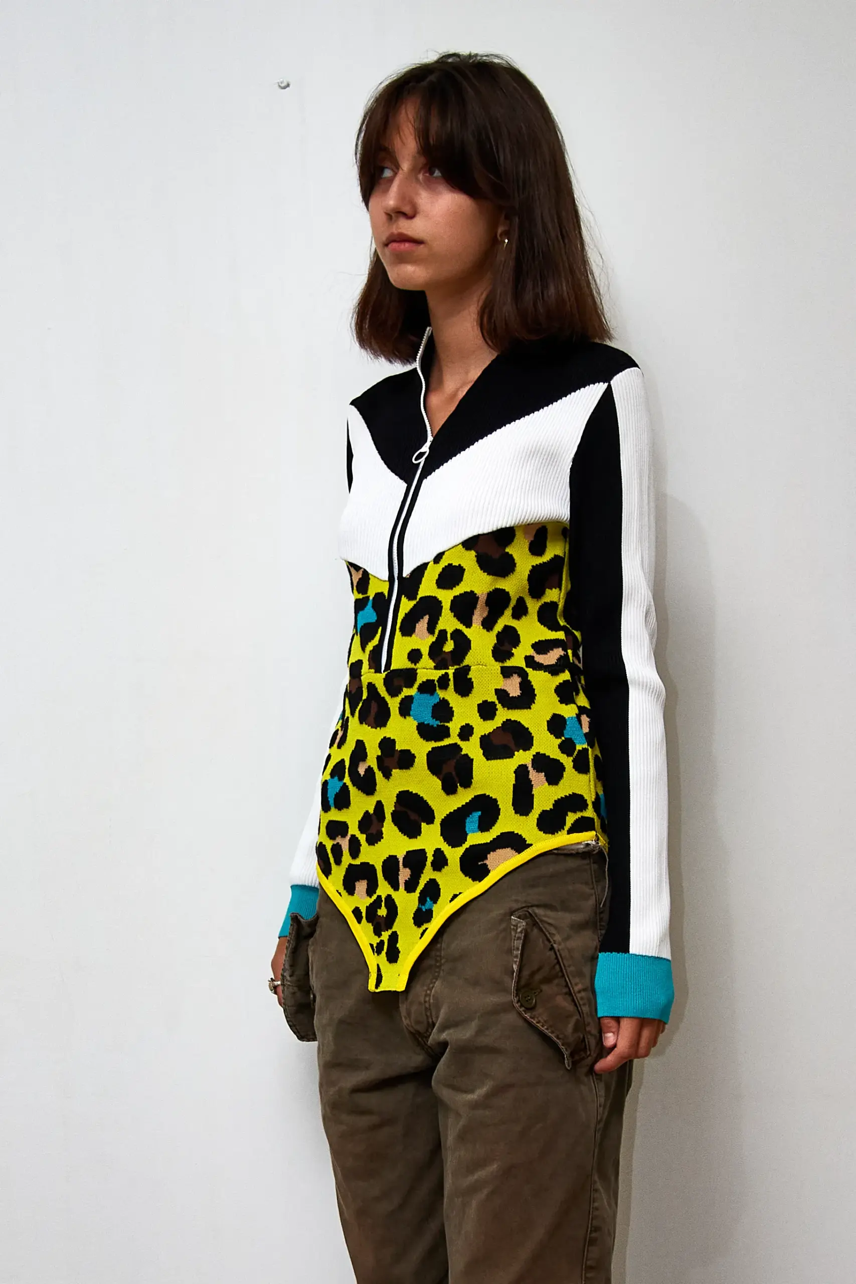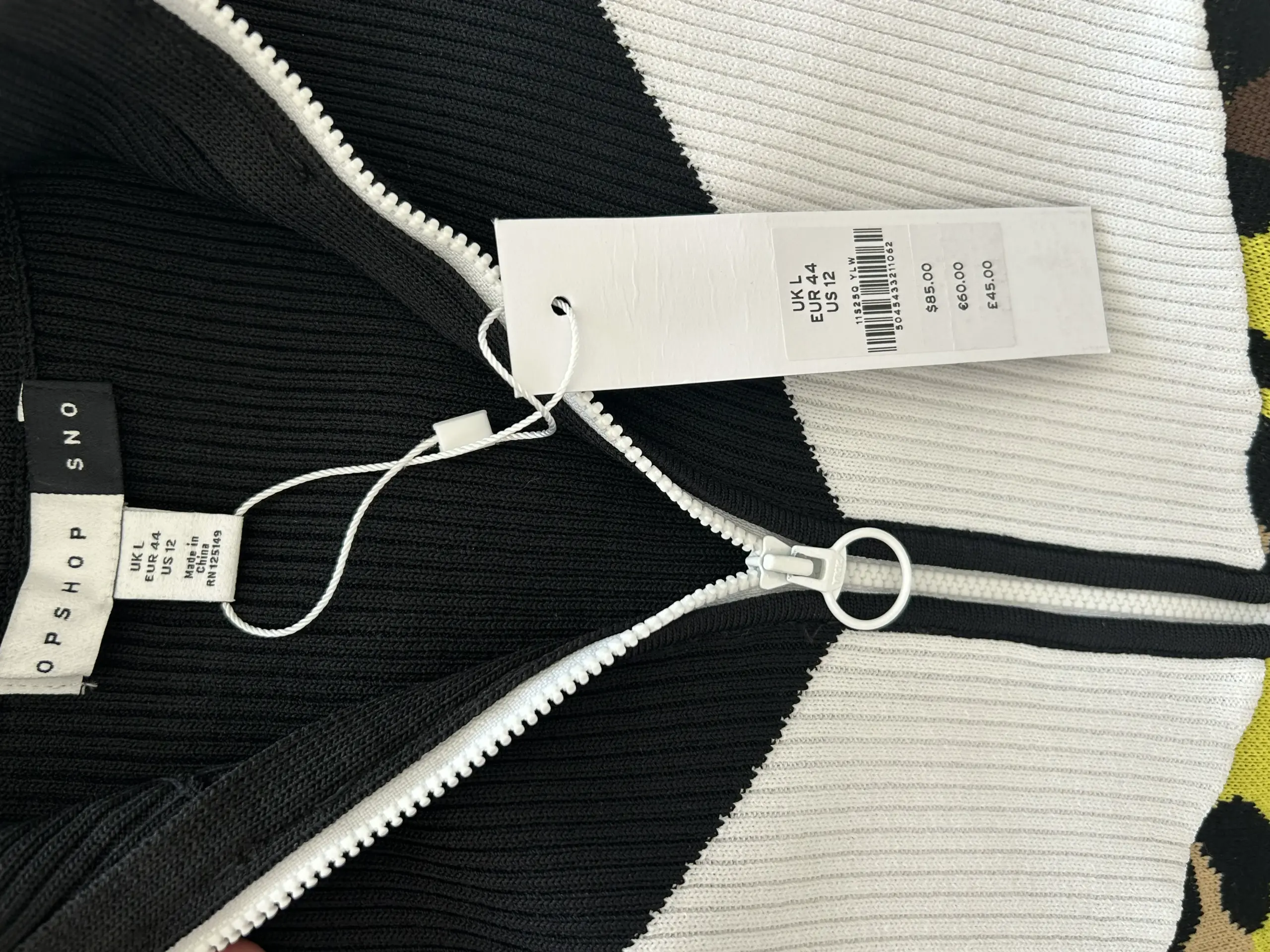 Body tricotat cu fermoar frontal. 62% viscoză, 28% poliamidă. Lungime 73cm, talie 78cm.