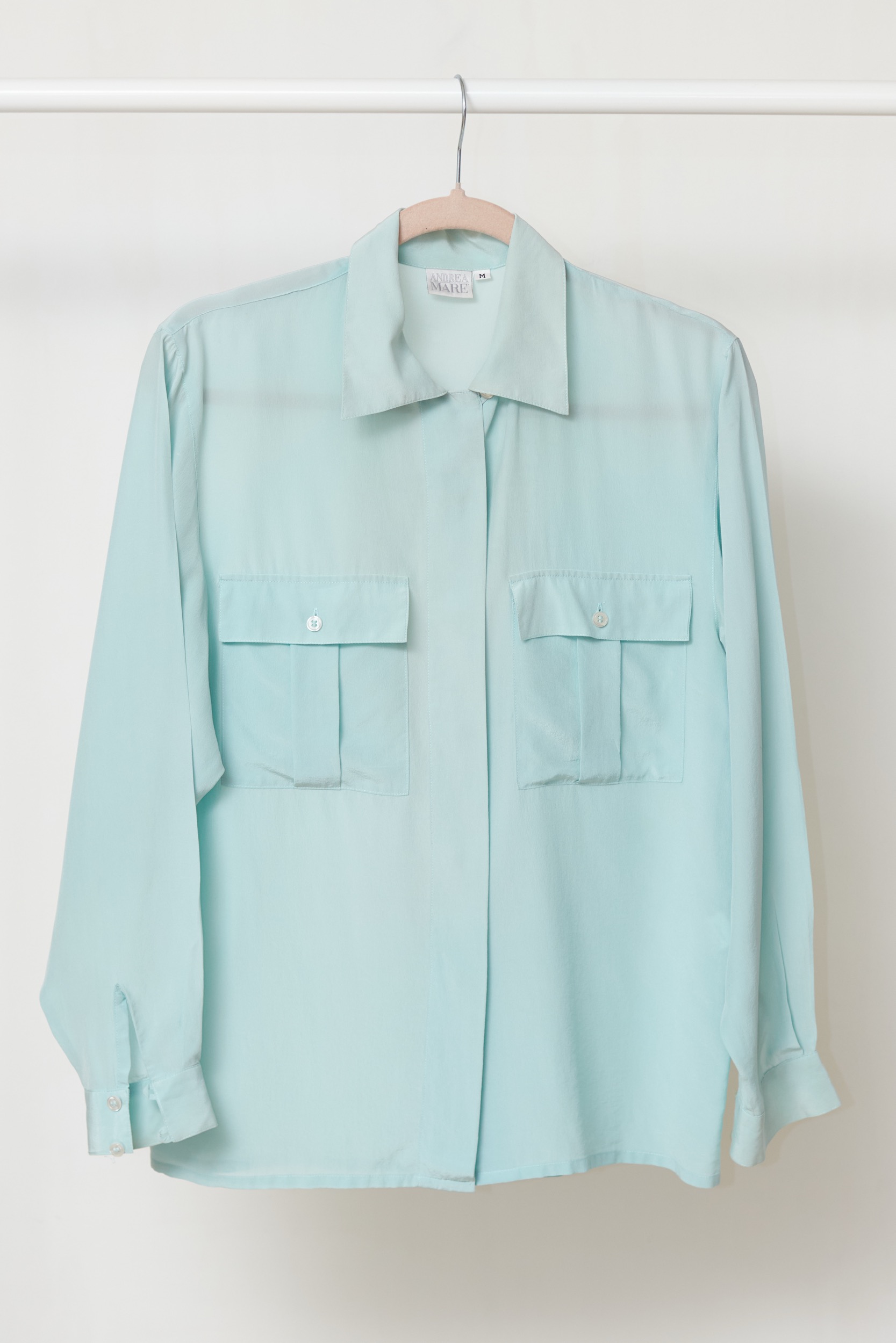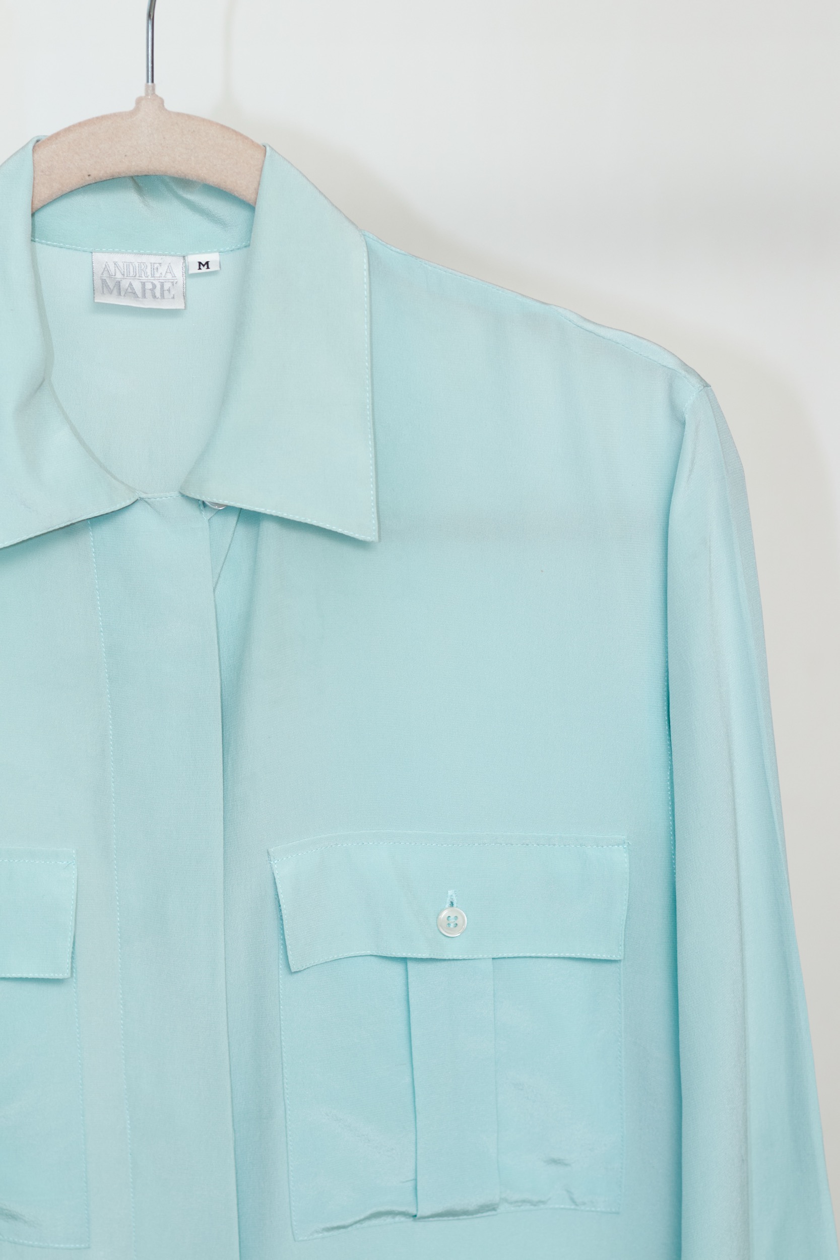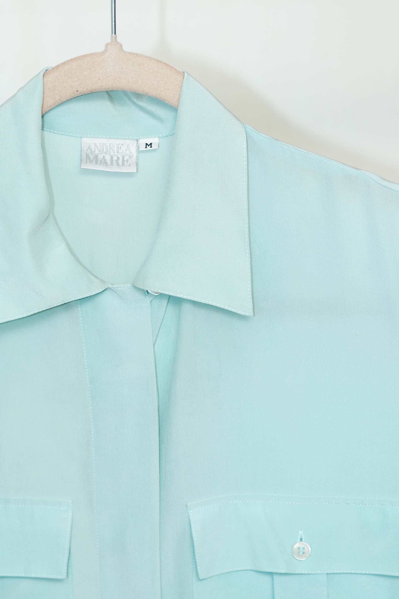 Cămașă Vintage Andrea Maré – 100% Mătase Naturală, Mentă Delicată – M