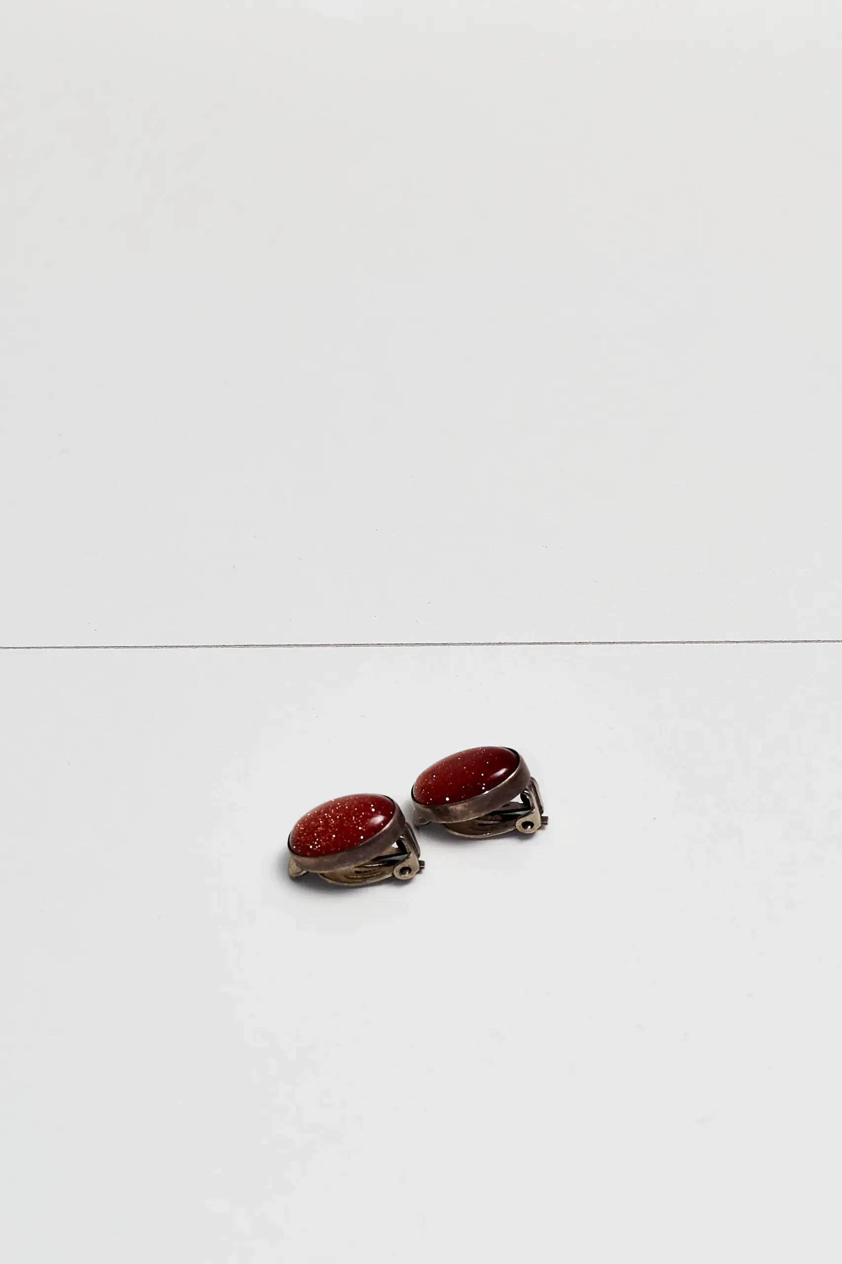 Cercei cu clips din argint sterling, cu o piatră ovală de goldstone. 2cm.