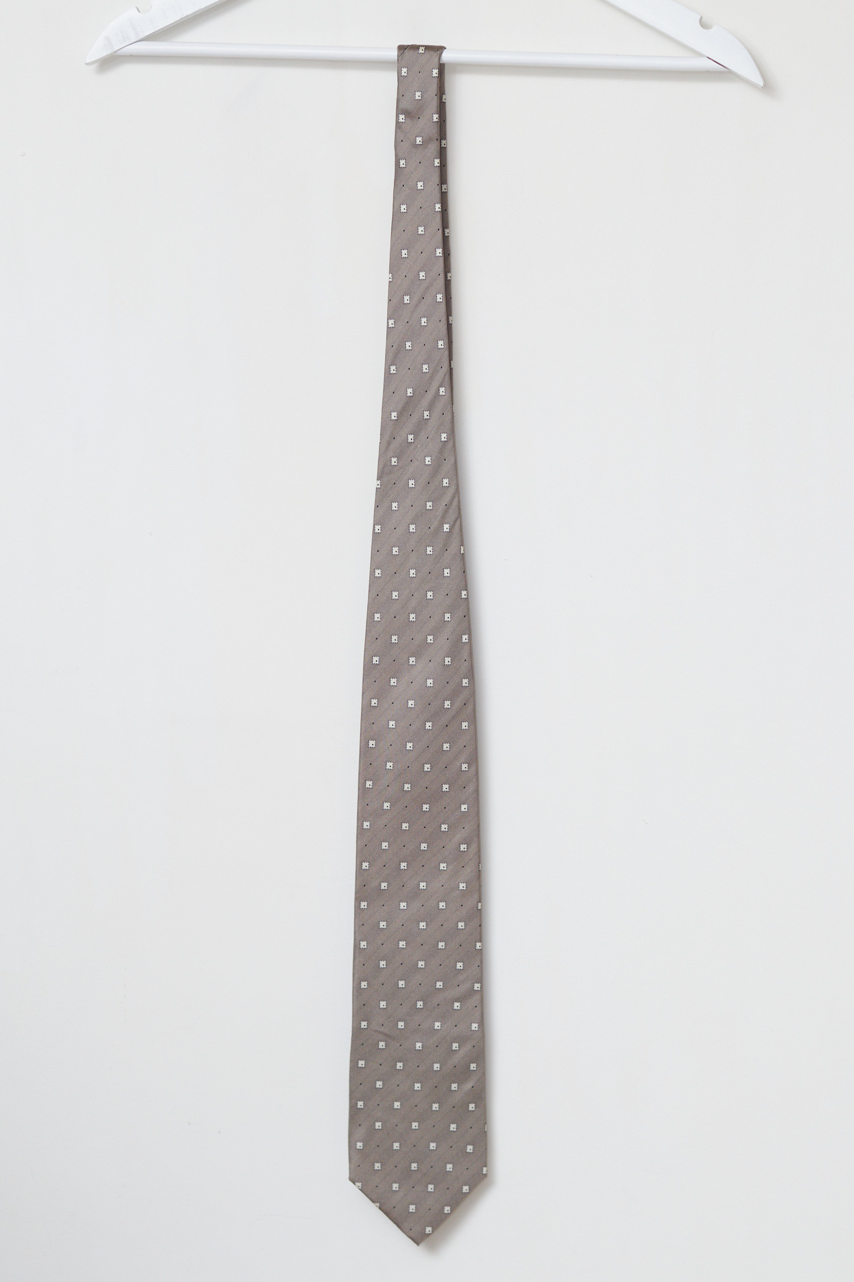 Cravată vintage din mătase Gri Imprimeu Geometric