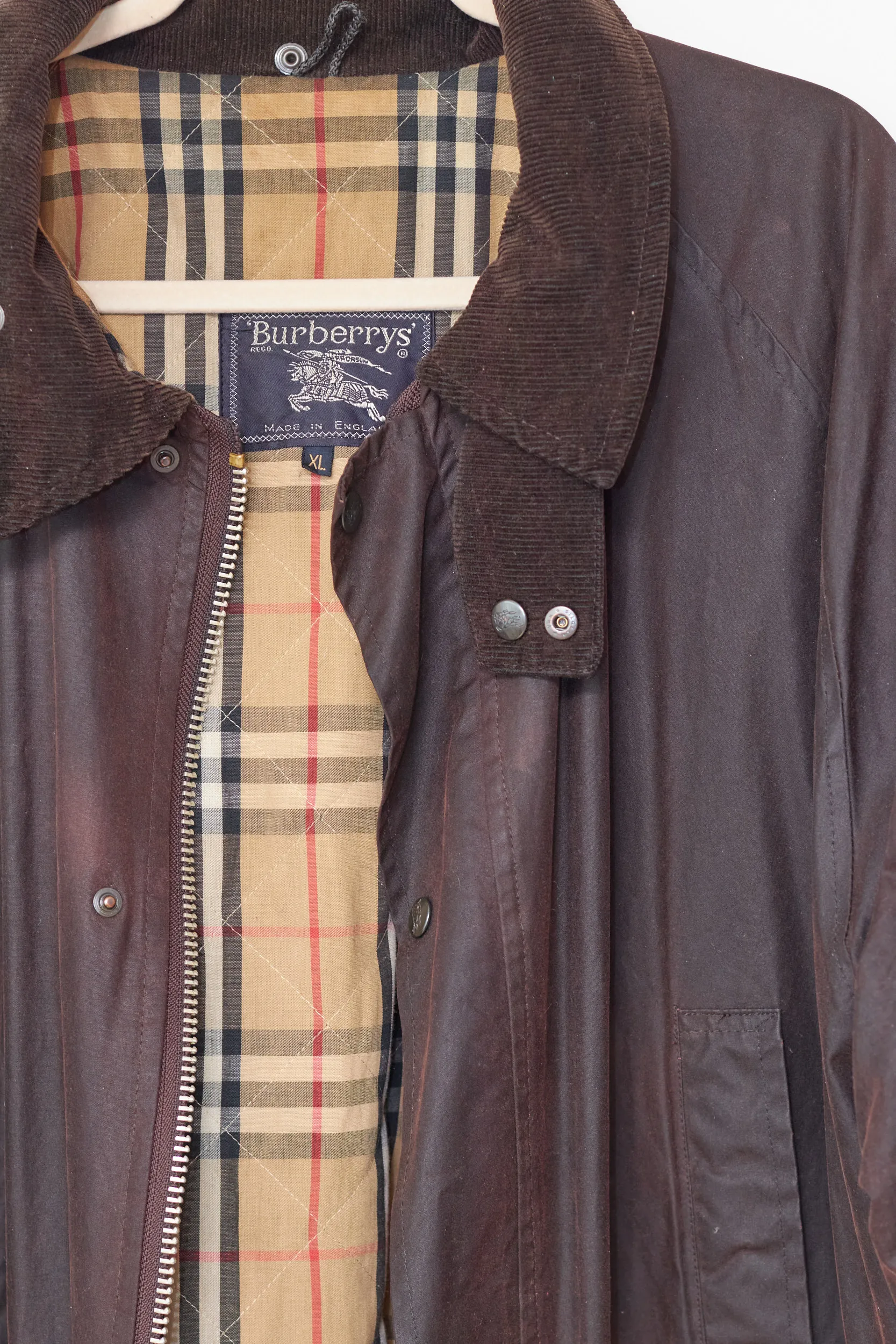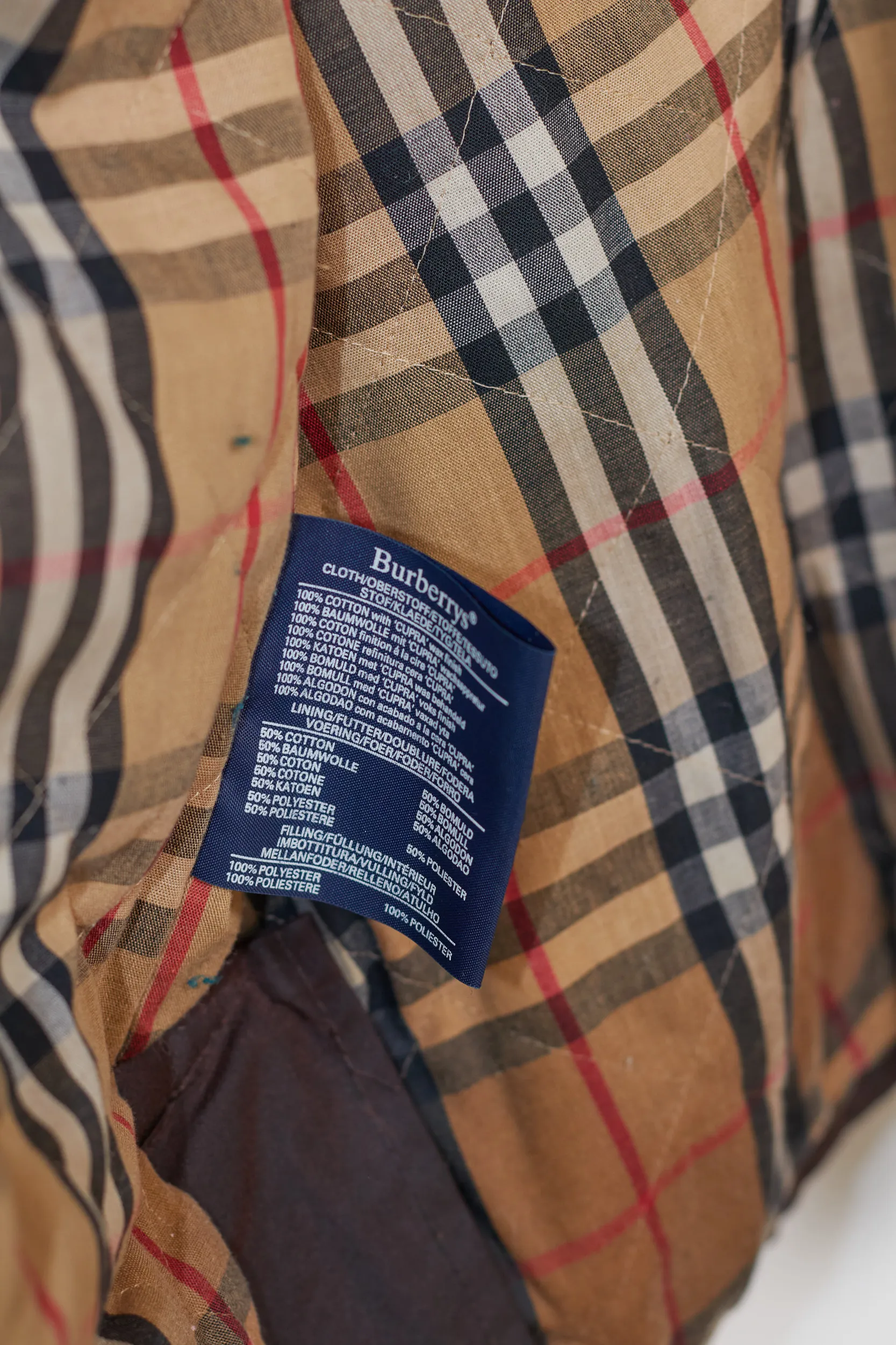 Marca și-a schimbat numele din „Burberrys” în „Burberry” în 1999. Prin urmare, această jachetă este garantată ca fiind de dinainte de 1999, un Vintage din anii ’90).
