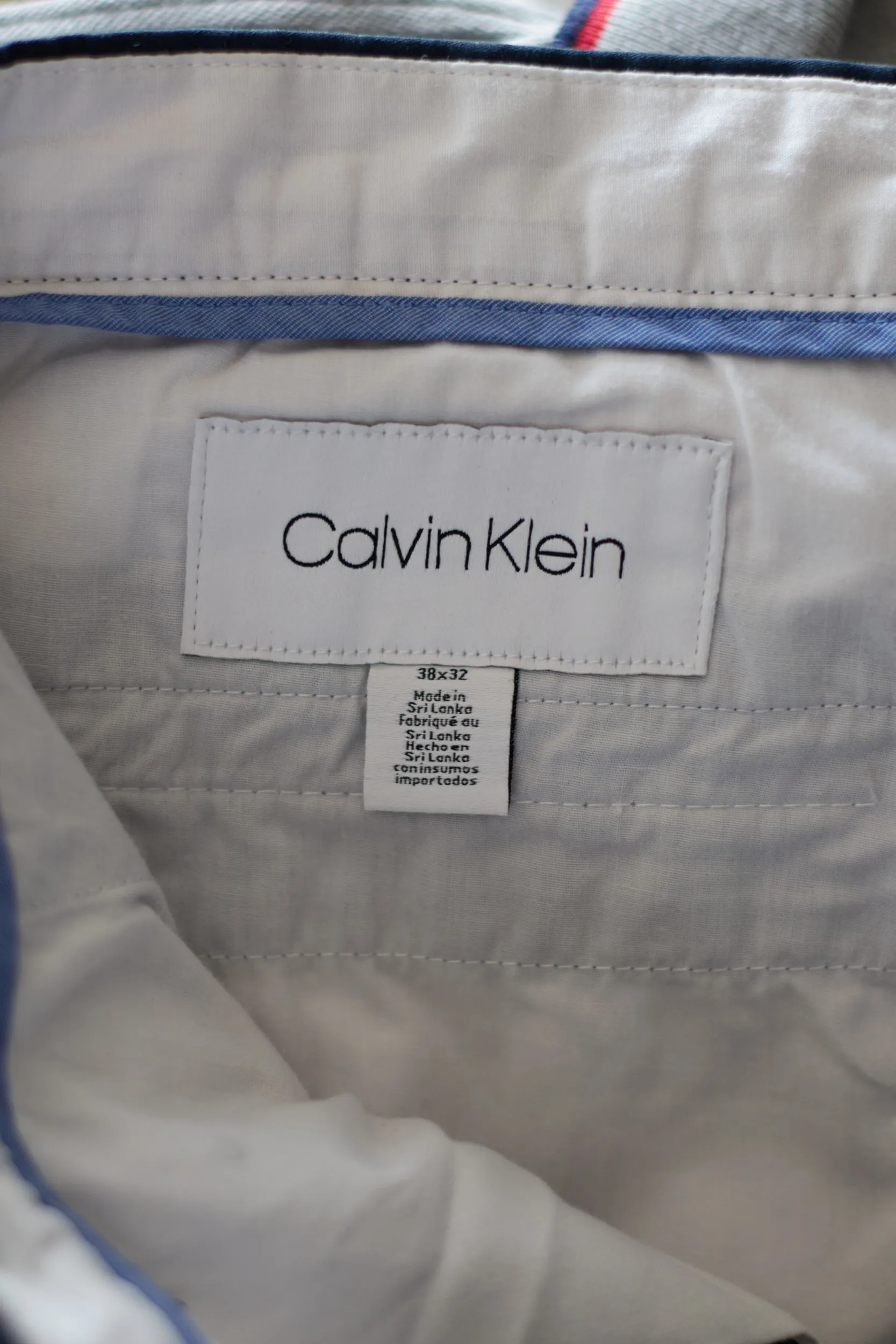 Branding: Logo discret „Calvin Klein” pe eticheta mică de deasupra buzunarului din spate, semn al autenticității.