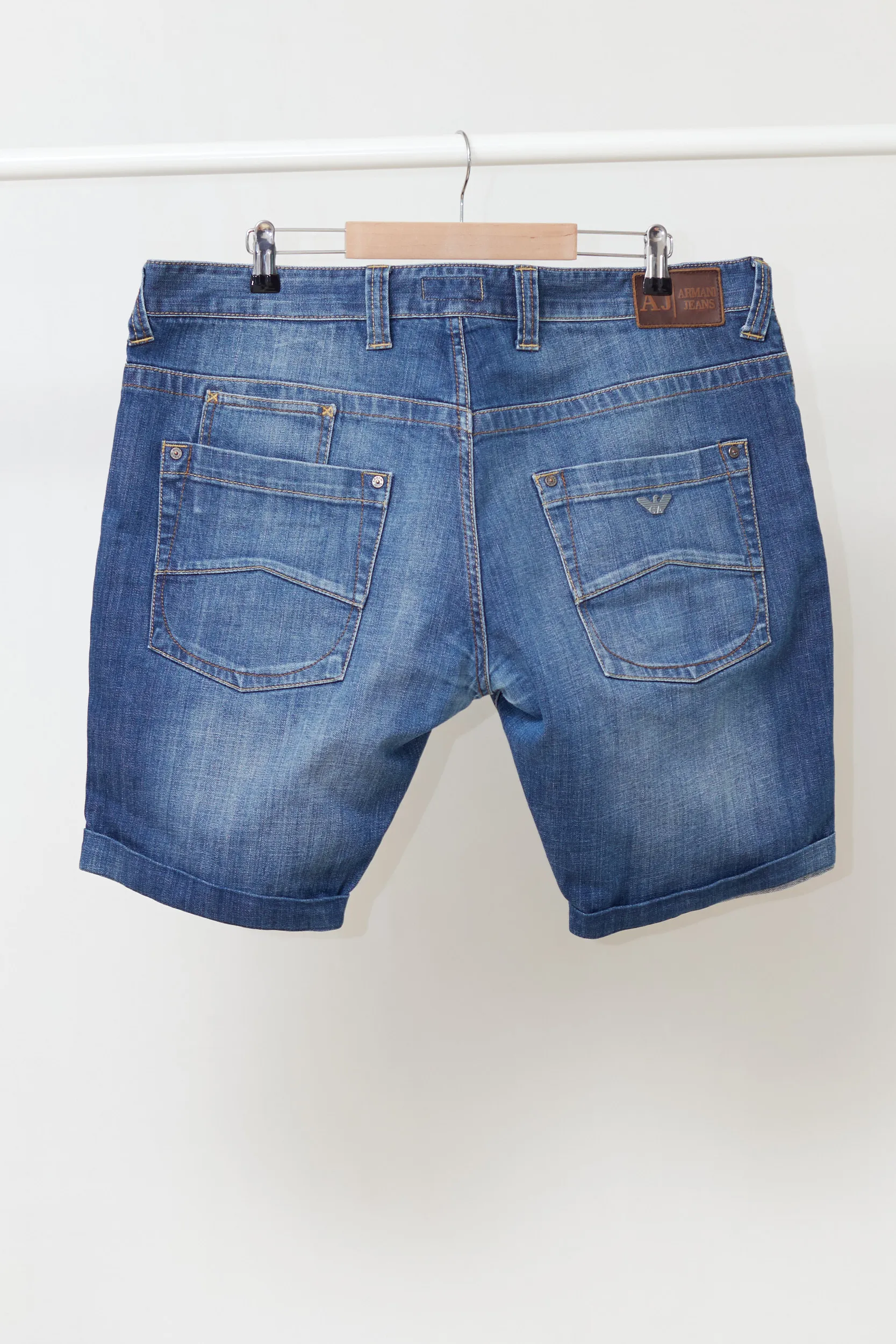 Pantaloni Scurți Bărbați Armani Jeans (AJ) – Denim Albastru & Manșetă Rulată W38 / XL
