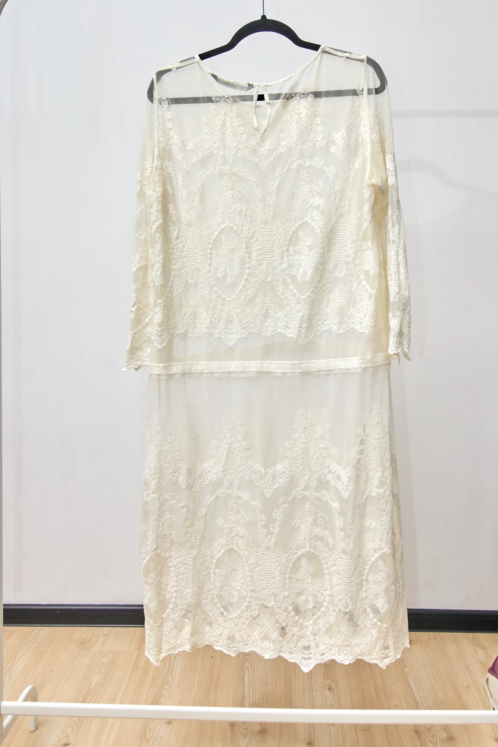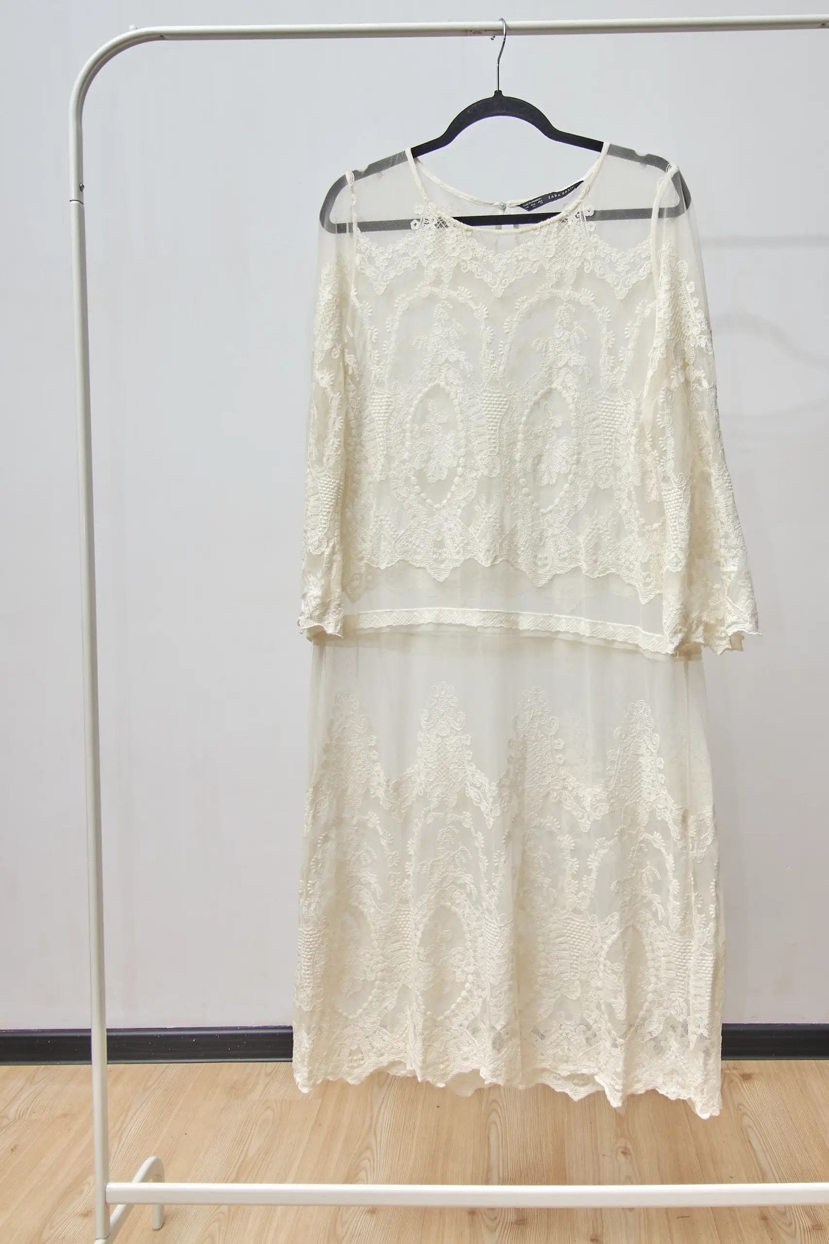 Rochie de dantelă transparentă. Bust 110cm, lungime 109cm. Lipsă etichetă de compoziție.