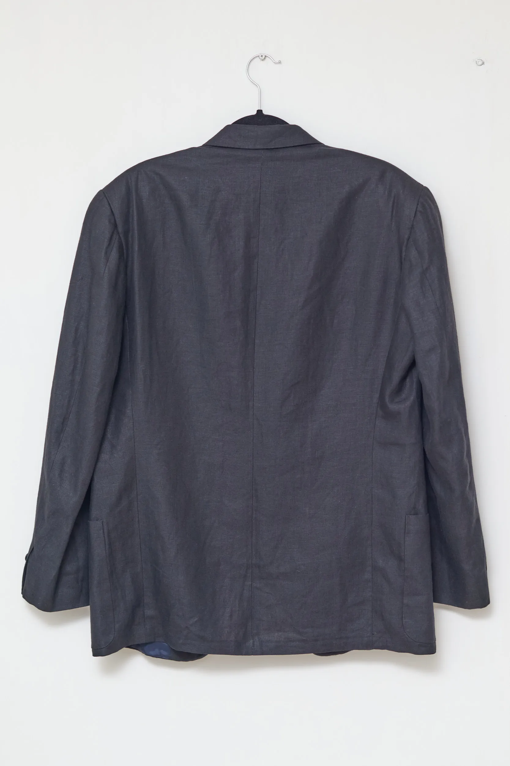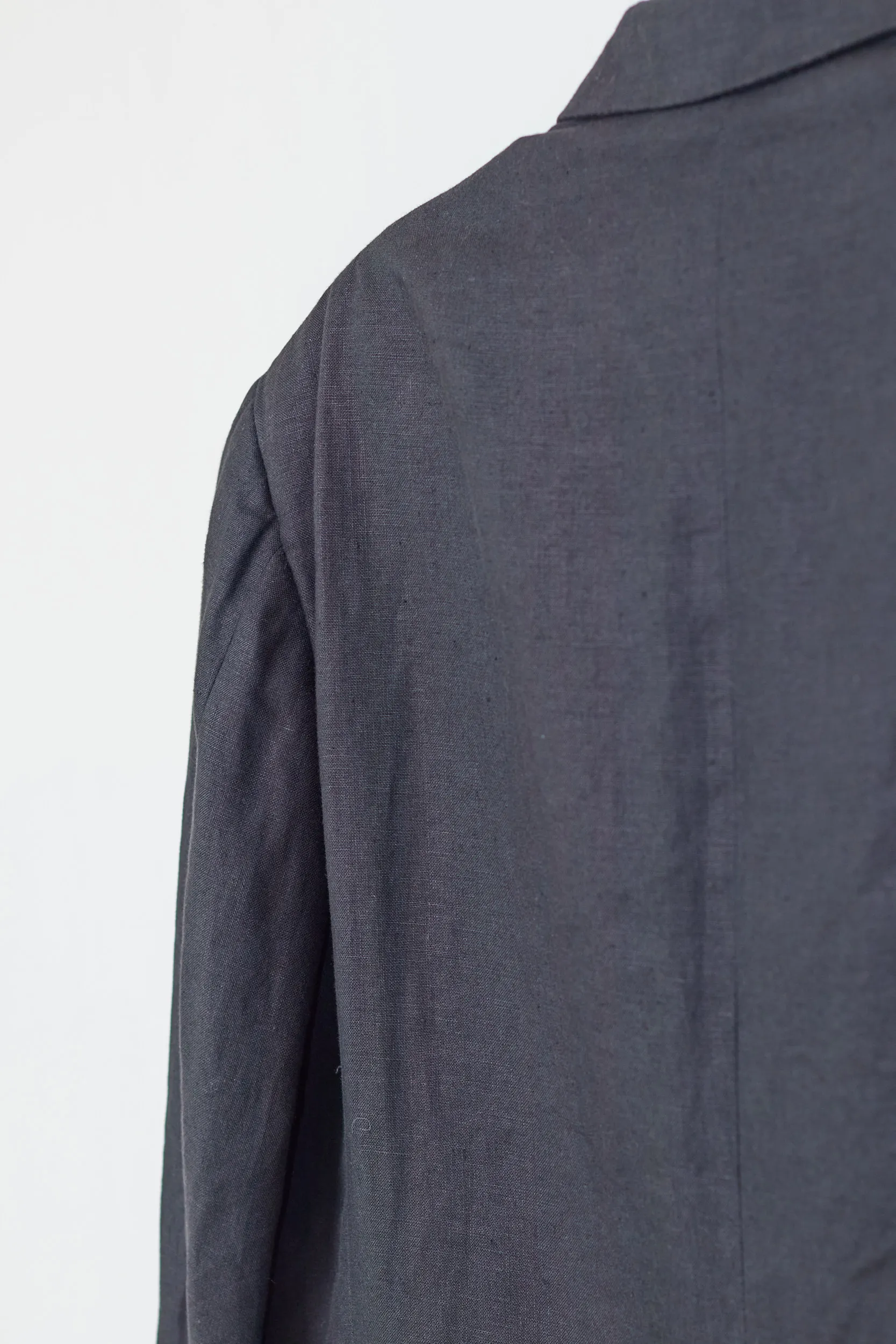 Sacoul se remarcă prin croiala sa relaxată, specifică brandului, și prin buzunarele aplicate care îi scad formalitatea, permițând asortarea ușoară cu jeans sau pantaloni Chinos. Materialul are o textură superbă, mată și respirabilă, specifică inului, într-o nuanță de Negru stins / Antracit.