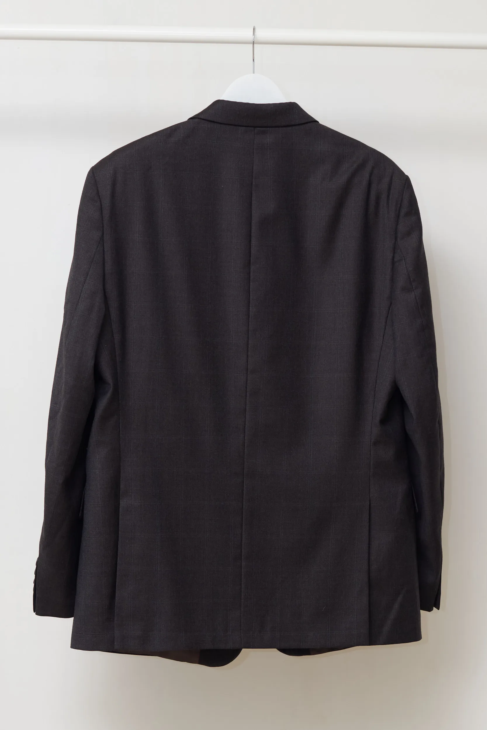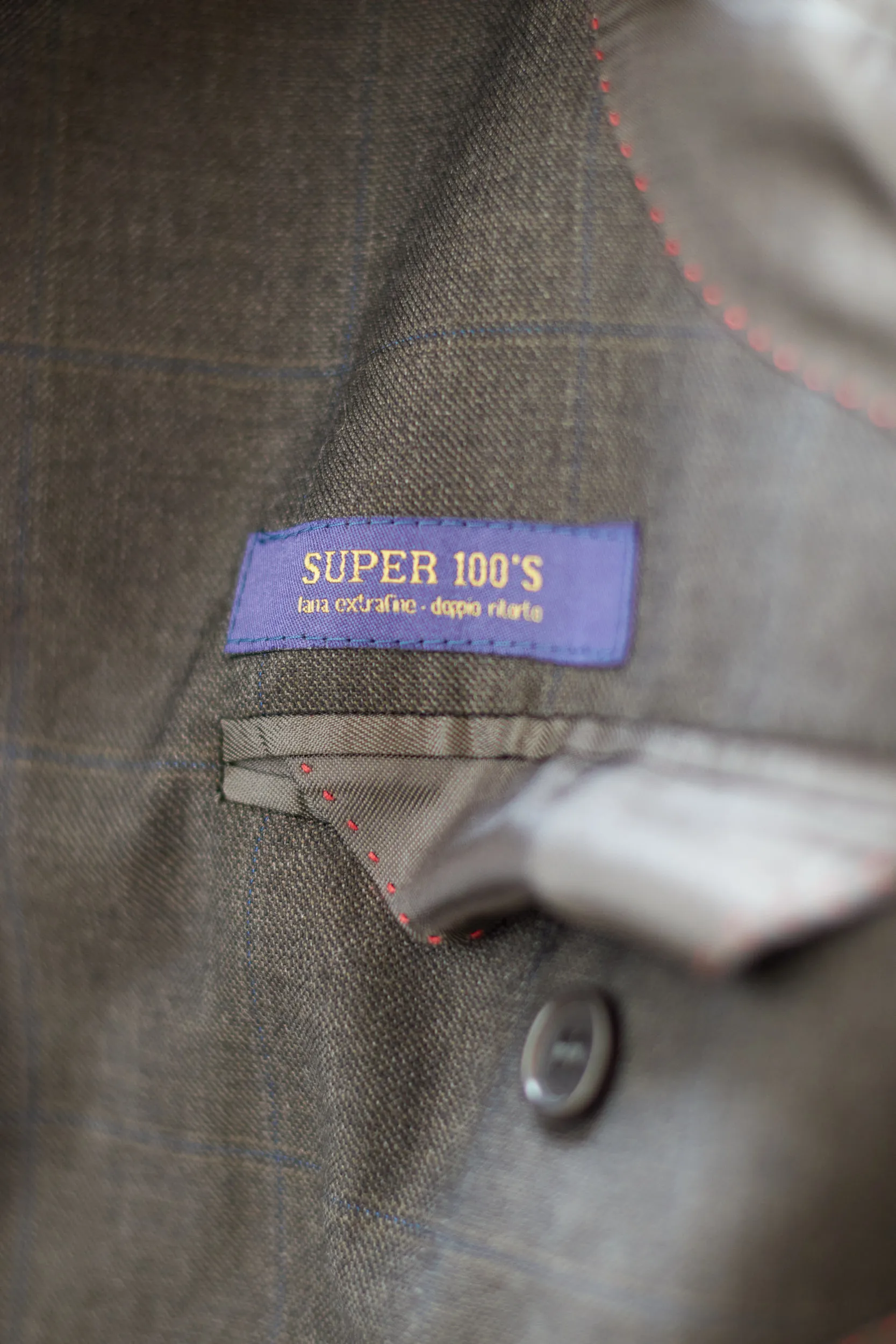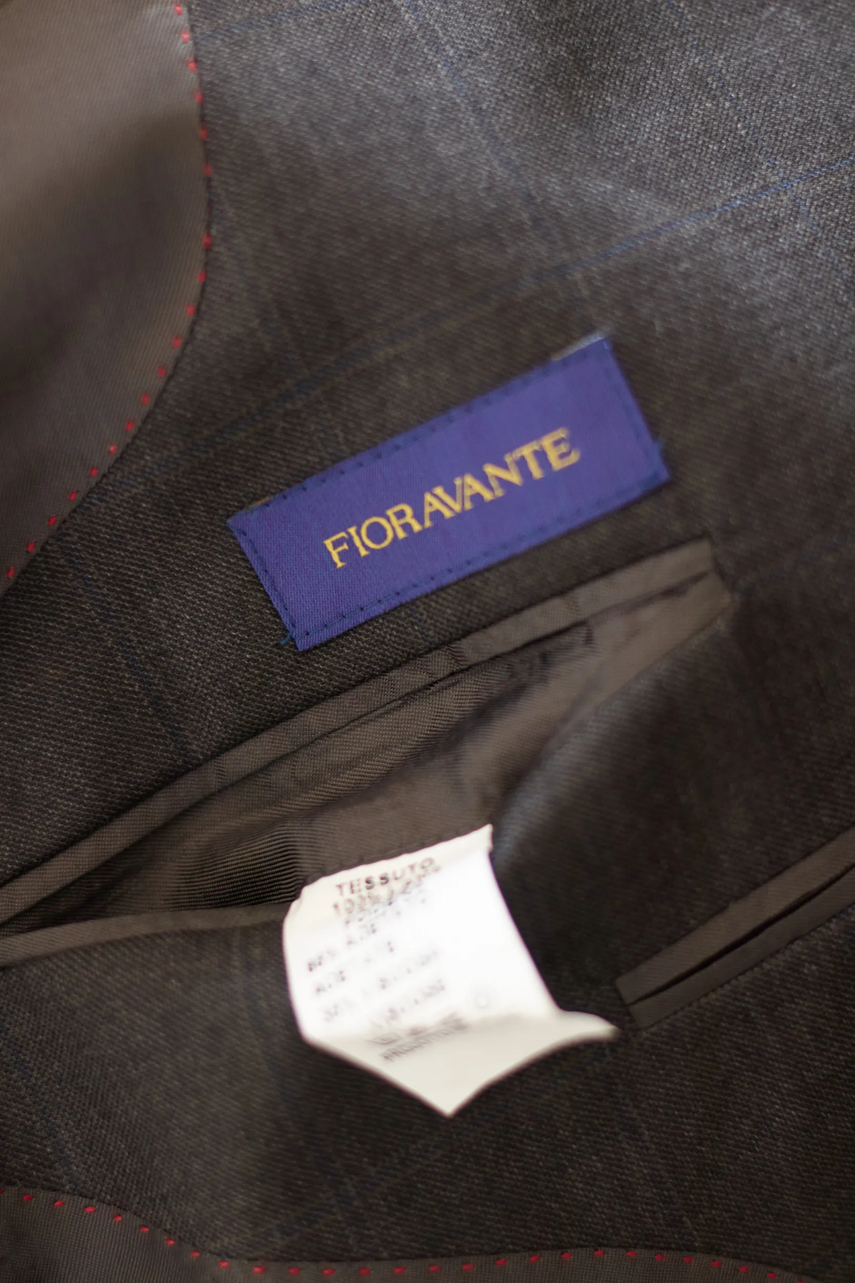 Calitate sartorială autentică. Acest sacou Fioravante este realizat dintr-o stofă de lux: 100% Lână Super 100’s. Eticheta „Doppio Ritorto” garantează un material care nu doar se simte incredibil de fin, dar este și rezistent la șifonare, revenind la forma inițială după o zi lungă. Compoziție: 100% Lână. Căptușeală: Un amestec de Acetat și Viscoză (fibre derivate din plante, care respiră). Carouri discrete pe fond gri închis (Charcoal), o nuanță sobră și elegantă. Buzunare interioare finisate cu „Fioravante”, cusături contrastante roșii pe interior.