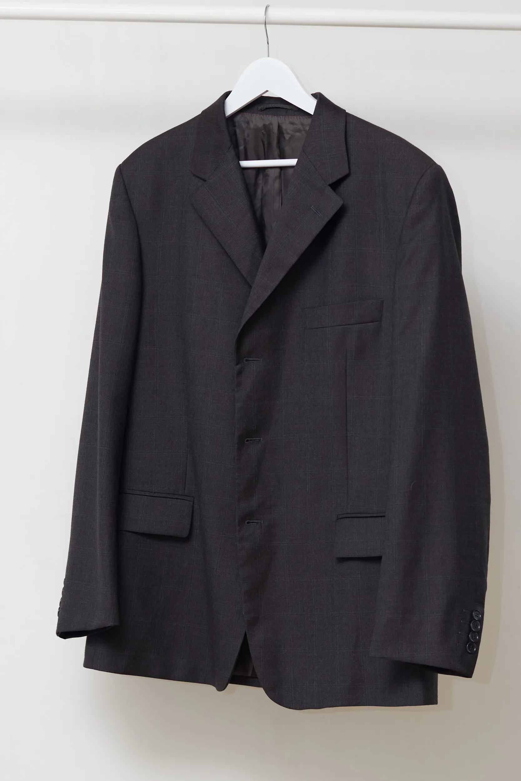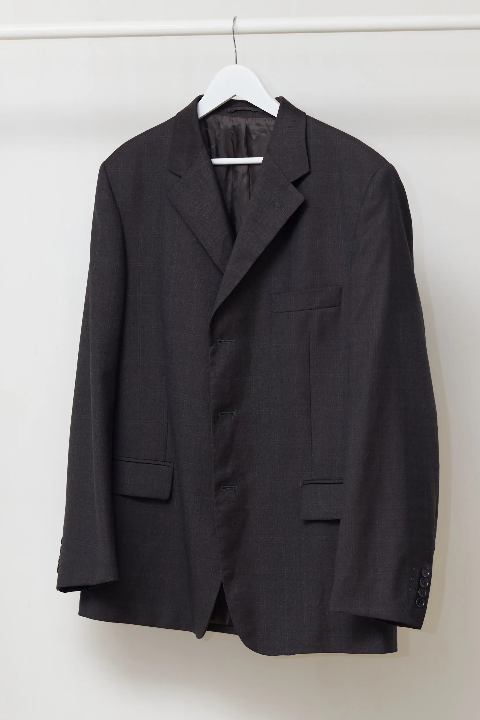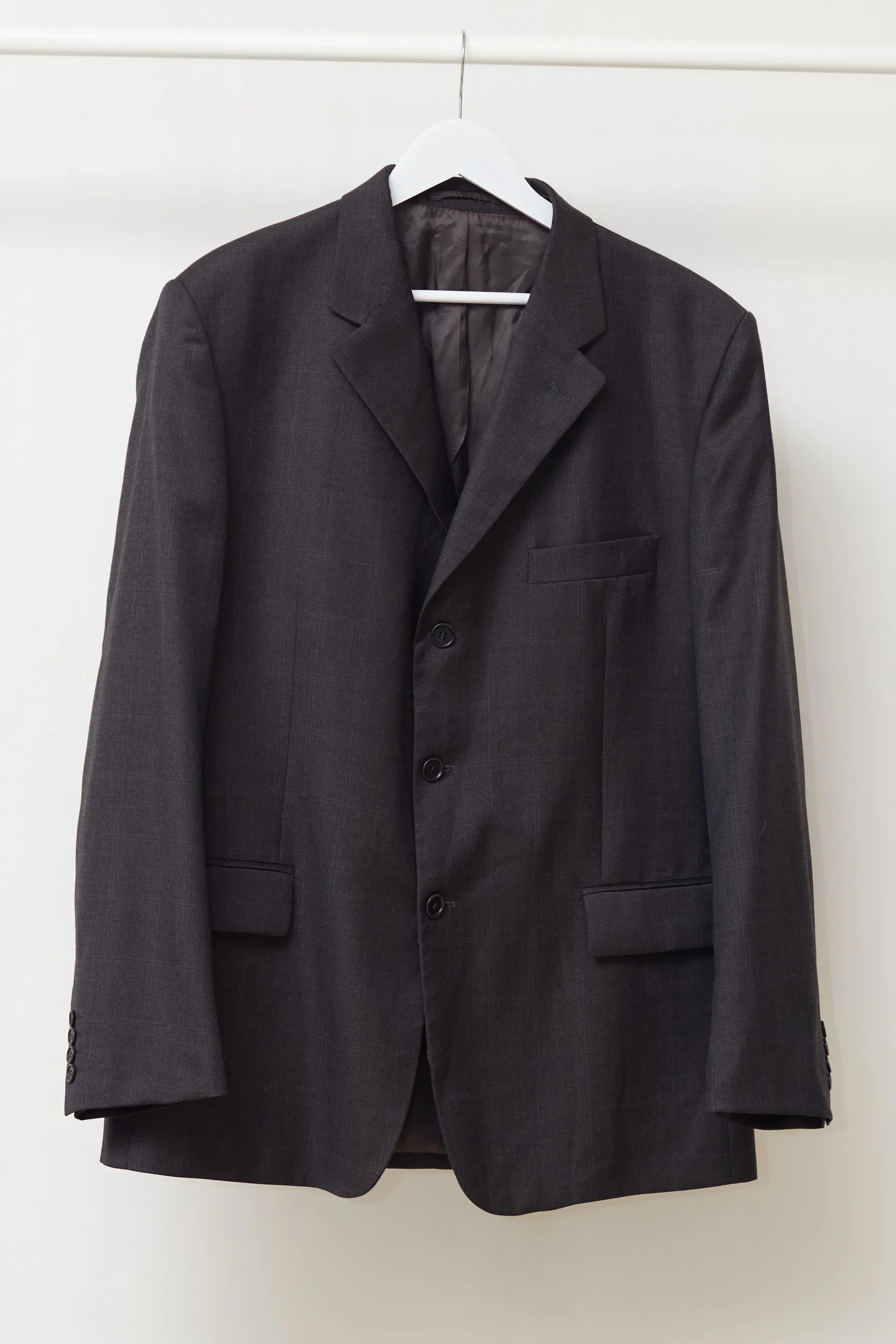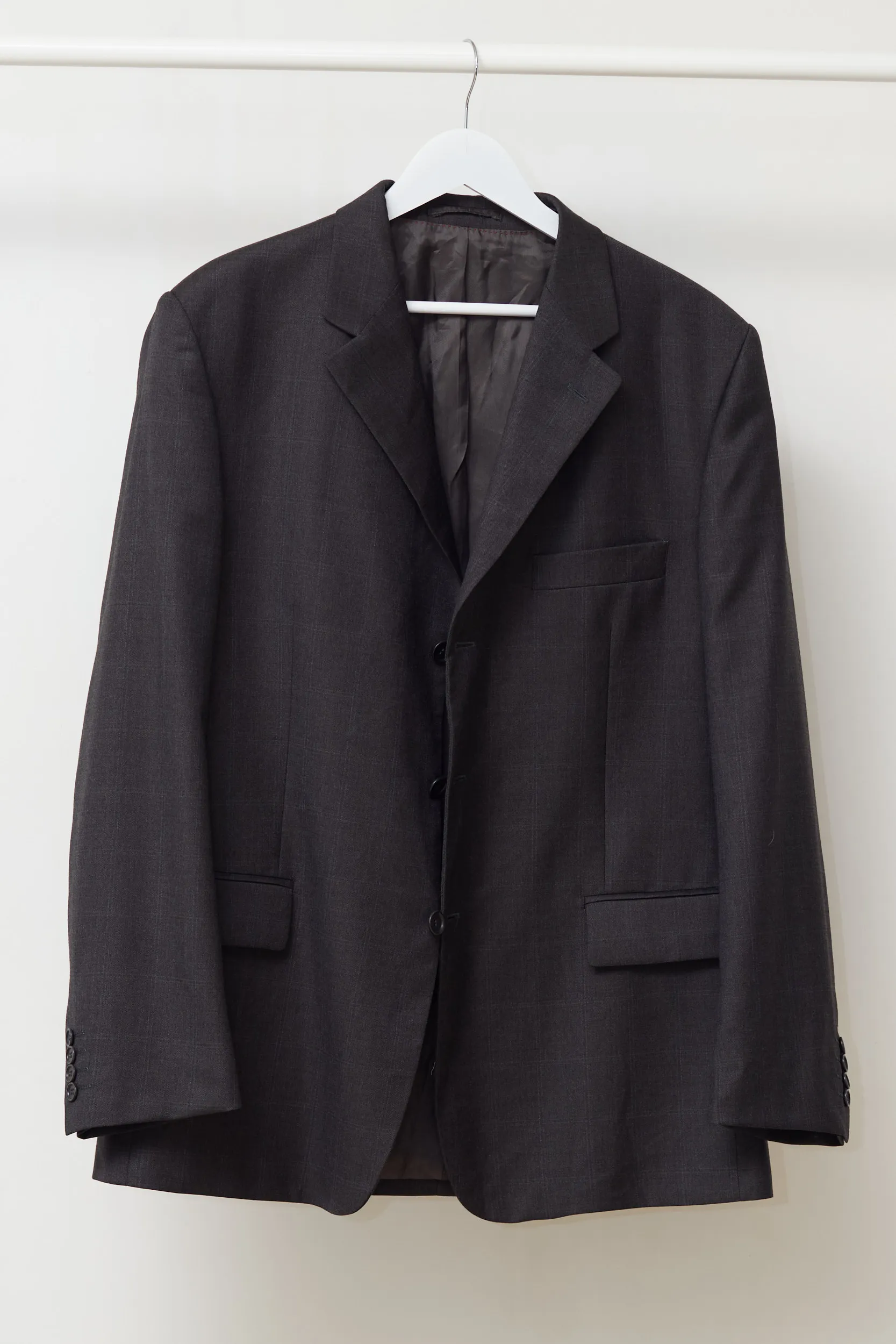 Calitate sartorială autentică. Acest sacou Fioravante este realizat dintr-o stofă de lux: 100% Lână Super 100’s. Eticheta „Doppio Ritorto” garantează un material care nu doar se simte incredibil de fin, dar este și rezistent la șifonare, revenind la forma inițială după o zi lungă. Compoziție: 100% Lână. Căptușeală: Un amestec de Acetat și Viscoză (fibre derivate din plante, care respiră). Carouri discrete pe fond gri închis (Charcoal), o nuanță sobră și elegantă. Buzunare interioare finisate cu „Fioravante”, cusături contrastante roșii pe interior.