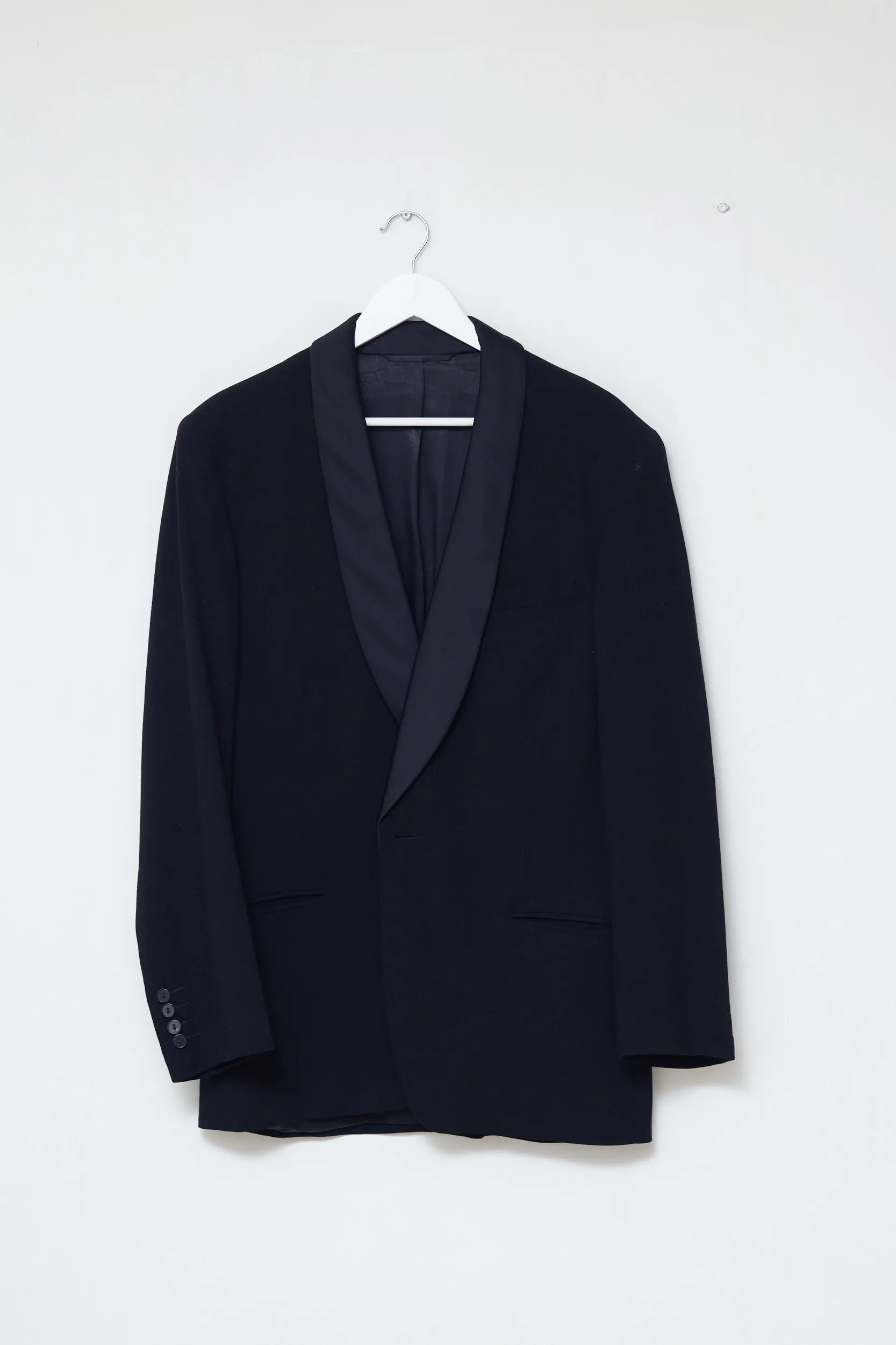 Sacou Smoking Vintage din lână „Viennese Master Tailor” – Guler Șal din Satin (Leopold Hirschler Wien) L