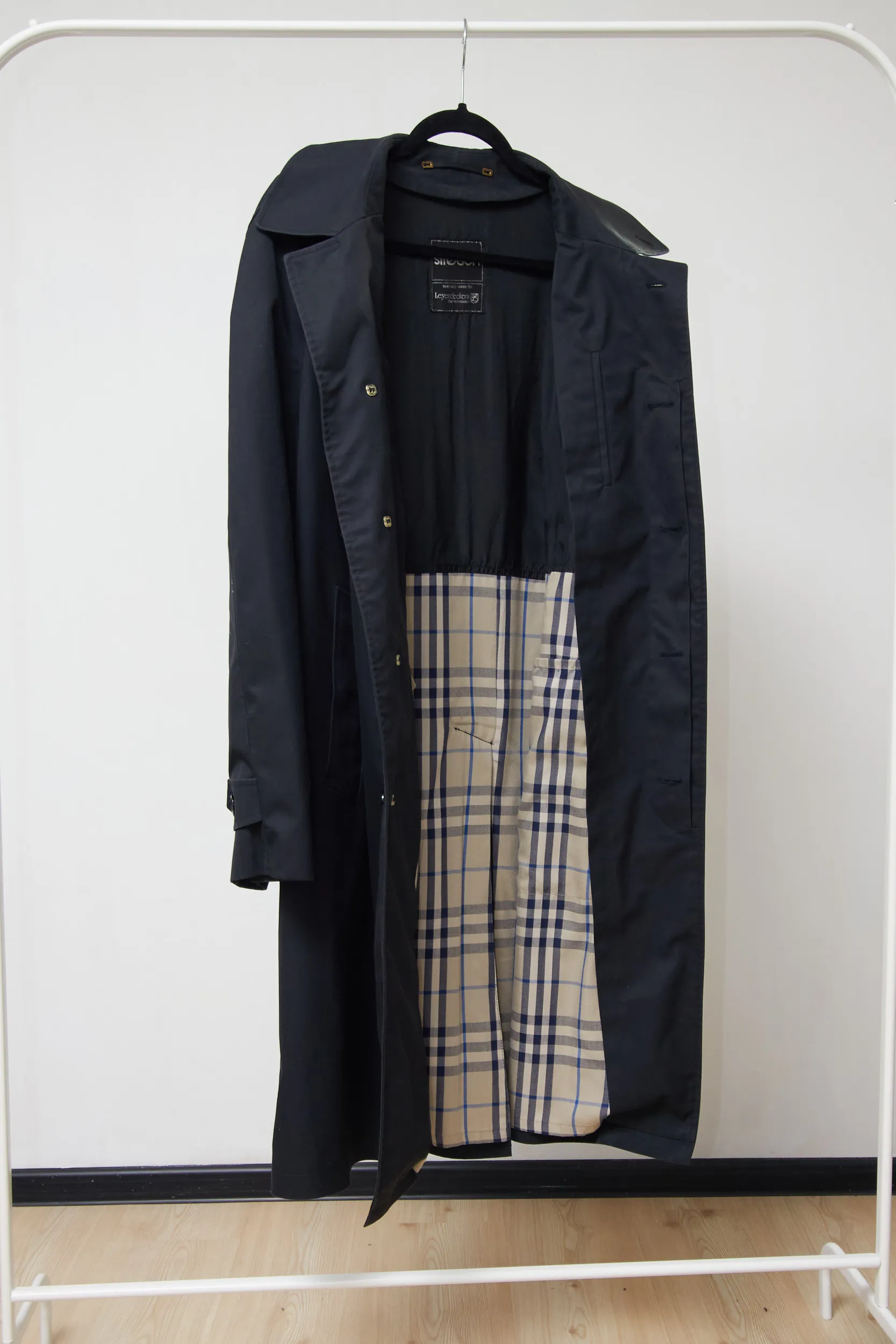 Trenci vintage de la Strellson, bleumarin. 65% poliester, 35% bumbac. Captușeală: 50% viscoză, 25% bumbac, 25% poliester. Lungime 108cm.