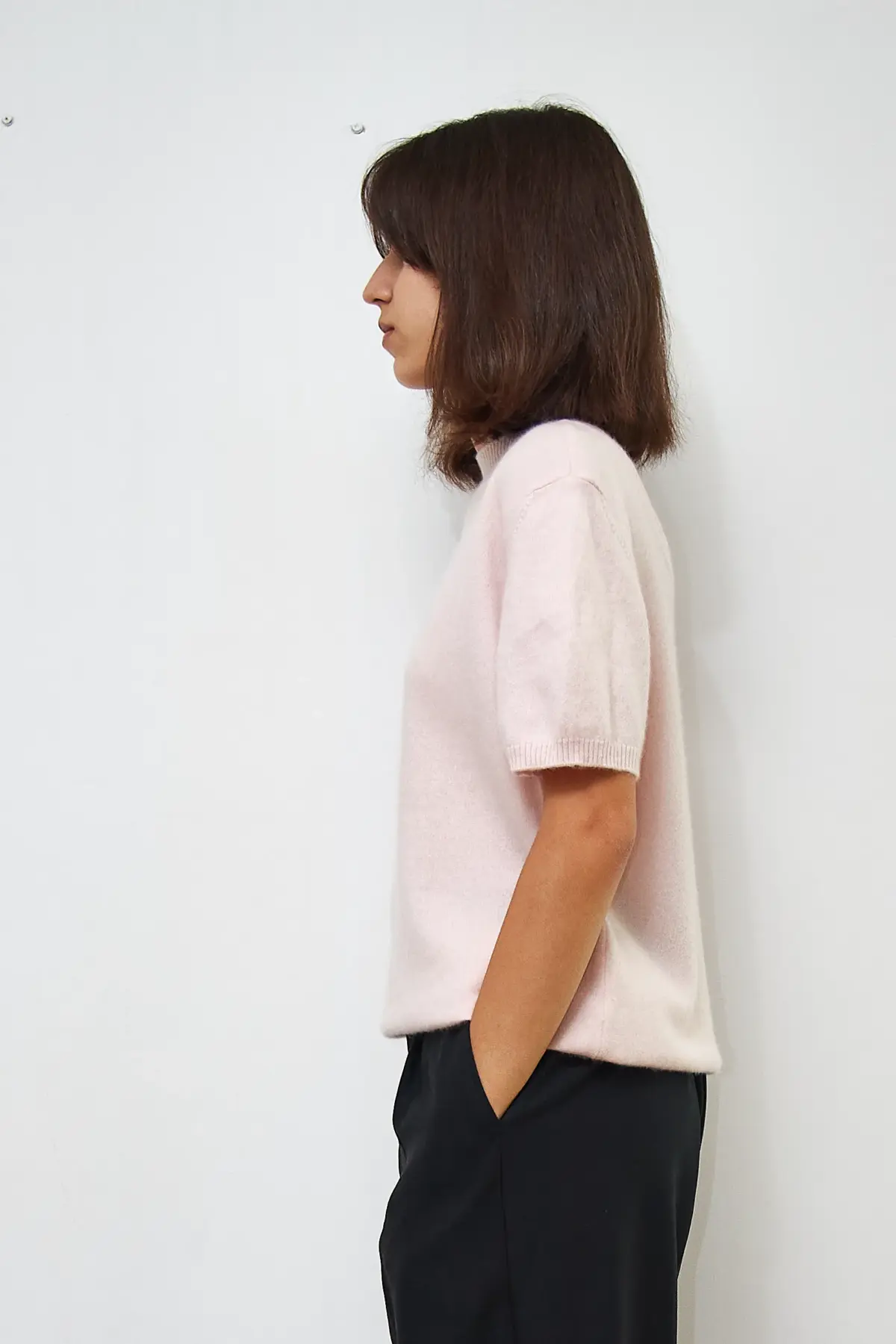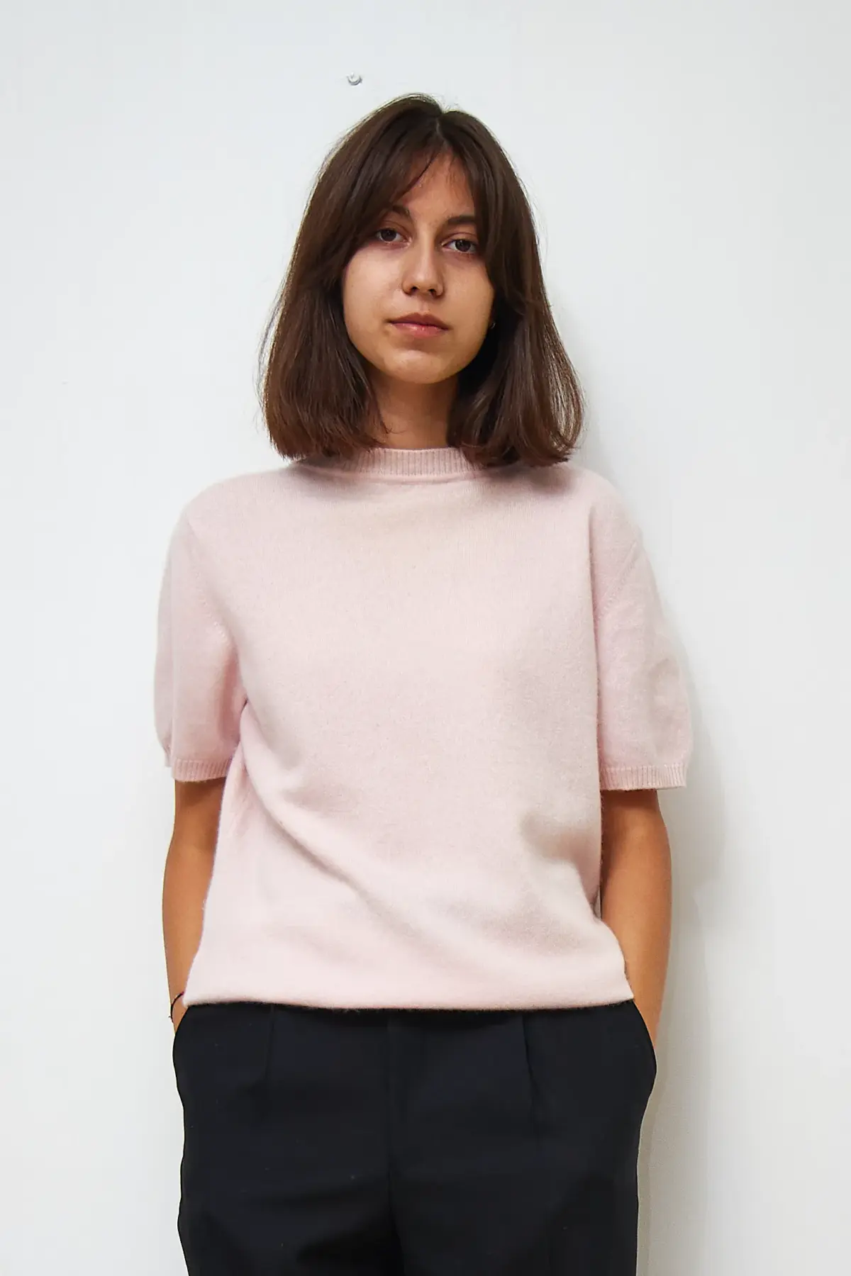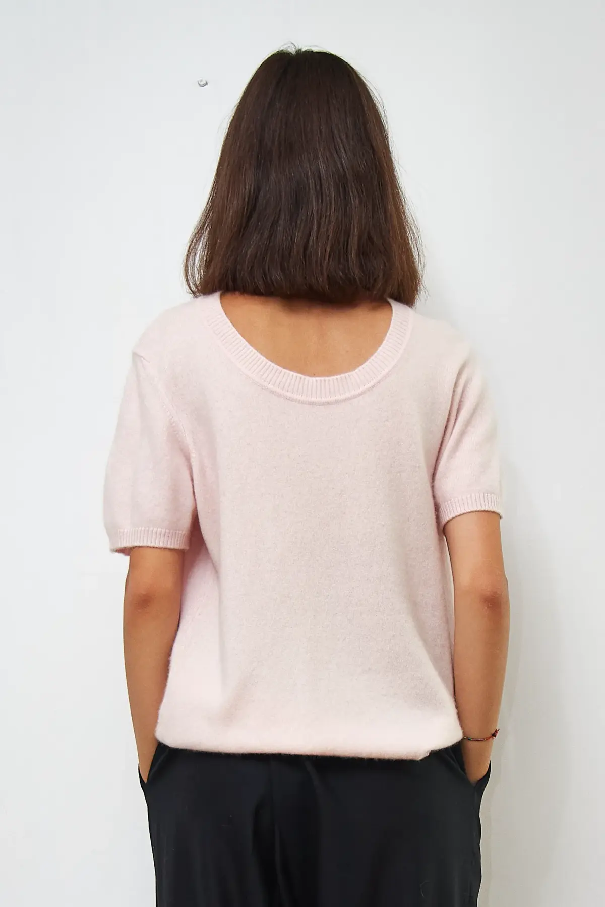 Bluză roz pal, 100% cașmir, Lungime 58cm.